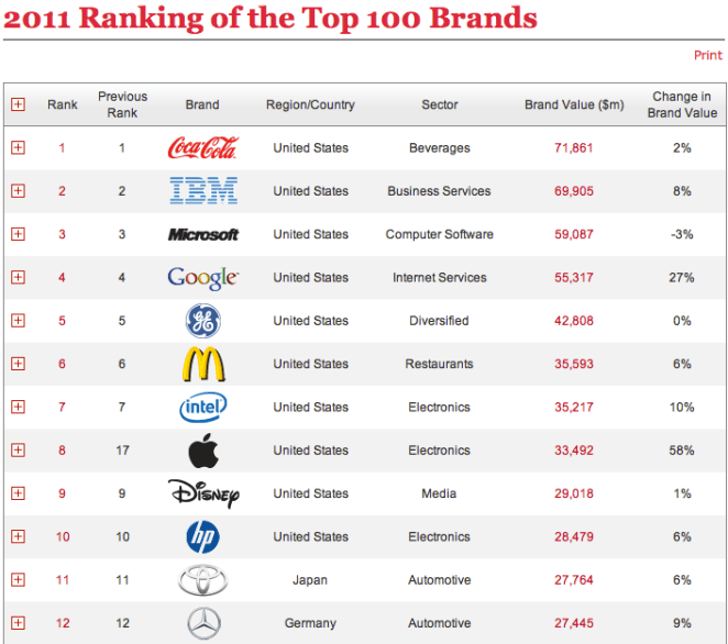 Last year, in October to be exact, Interbrand published a list of the top brands in the world. It’s no different from what they do every year. Take a look at the list here.