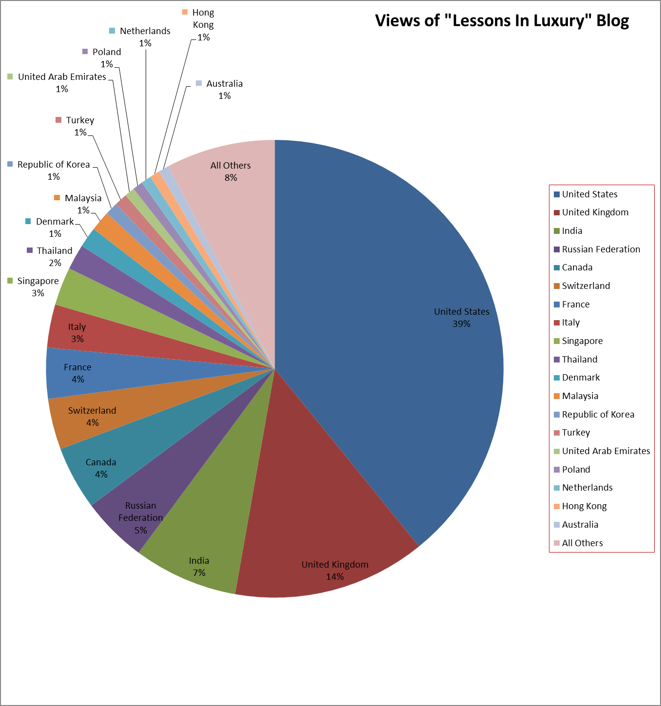 Today, the unique page views of the blog run in the thousands. Here’s a look at where my readers come from. If my blog was a luxury goods company, we’d be very diversified.
